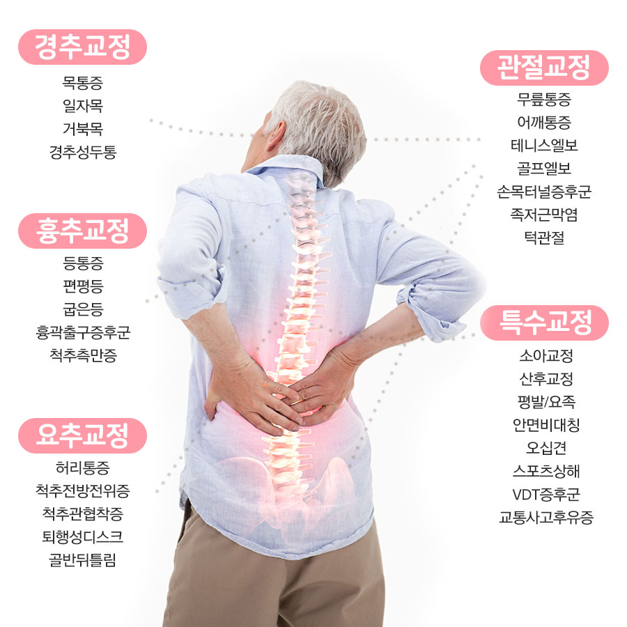 요추 뿐만 아니라 턱, 목, 등, 허리, 골반 등